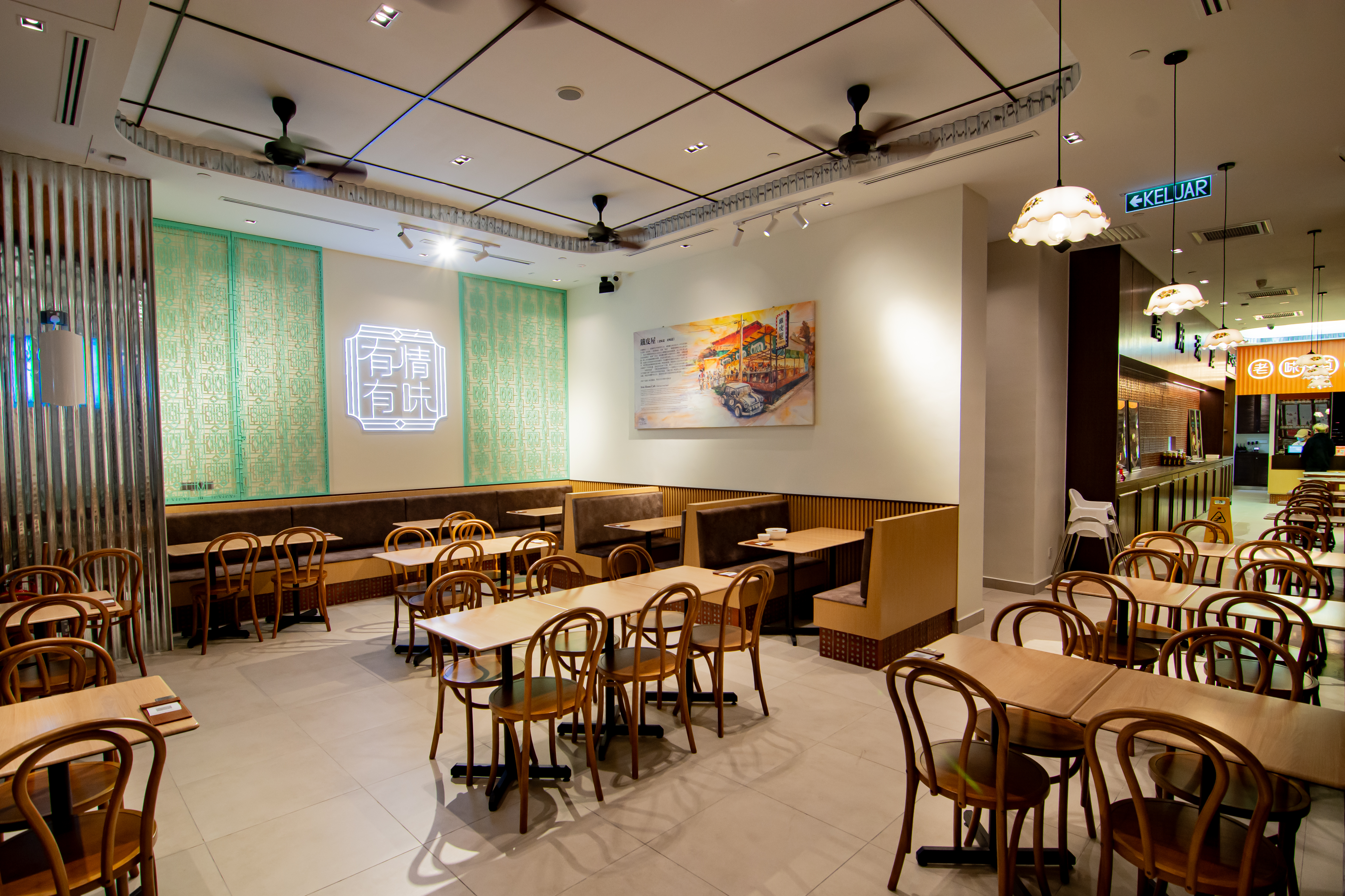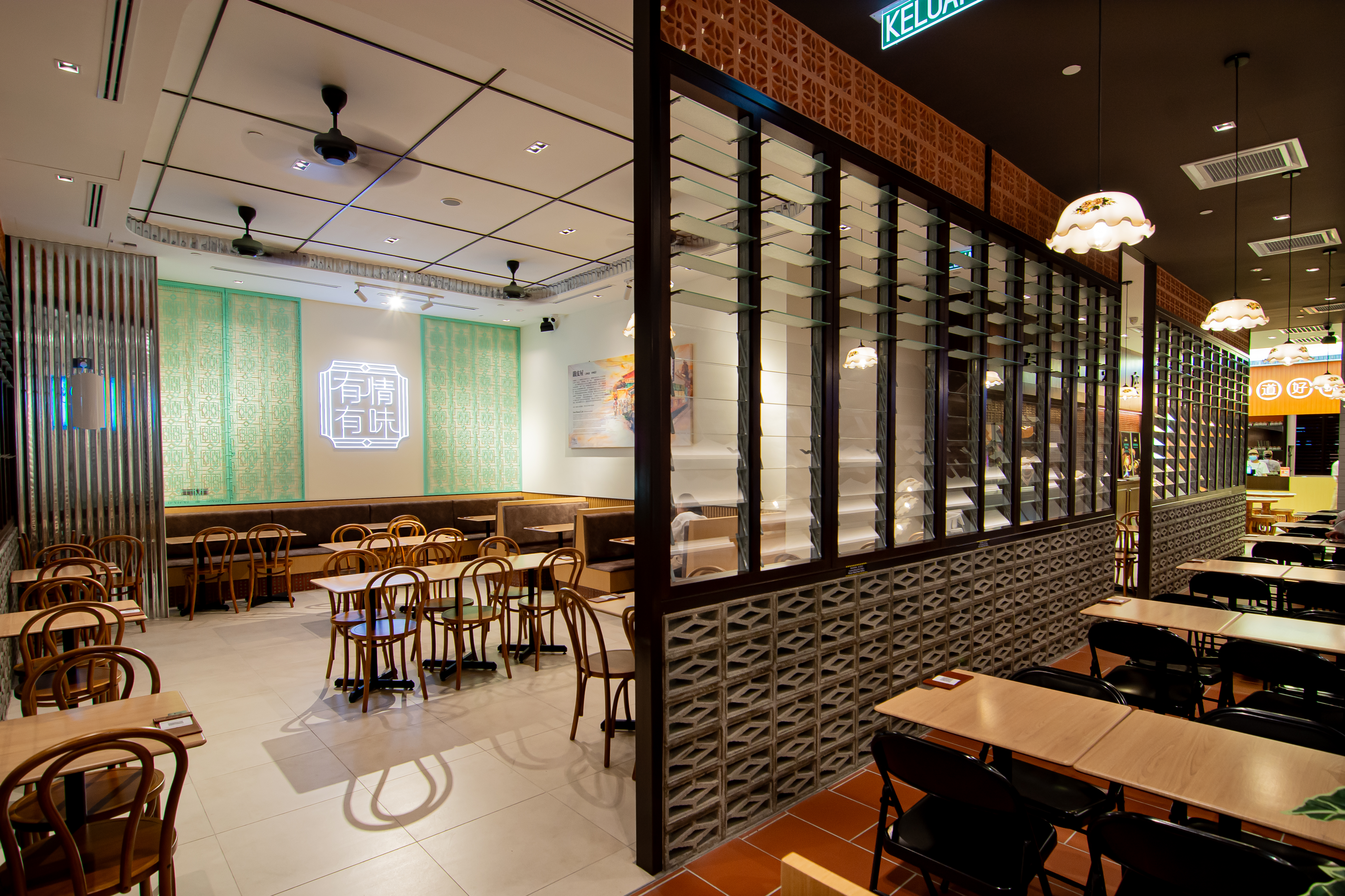 本项目以 传统南洋风格 Kopitiam 的现代演绎 为设计核心,在保留本地熟悉记忆的同时,重新诠释带有怀旧气息与独特魅力的餐饮空间体验。整体设计致力于让顾客在现代商业环境中,依然能够感受到传统咖啡店所承载的生活温度与文化情怀。